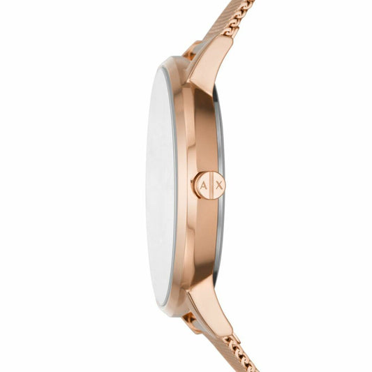 Armani Exchange Three-Hand Rose Gold-Tone Stainless Steel Mesh Watch